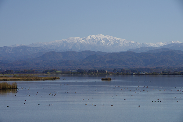 時間や天候の移ろいとともに、日に七度も湖面の色を変えるという柴山潟。季節ごとにさまざまな表情を見せ、条件の良い日には霊峰白山を望むこともできます。